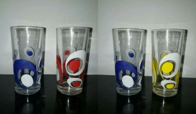 NUTELLA 4 Bicchieri Vintage Anni 70 Cerchi Concentrici Stroboscopici Rari