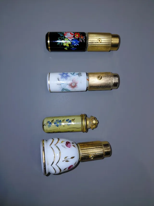 4 bottiglie di profumo decorate antiche