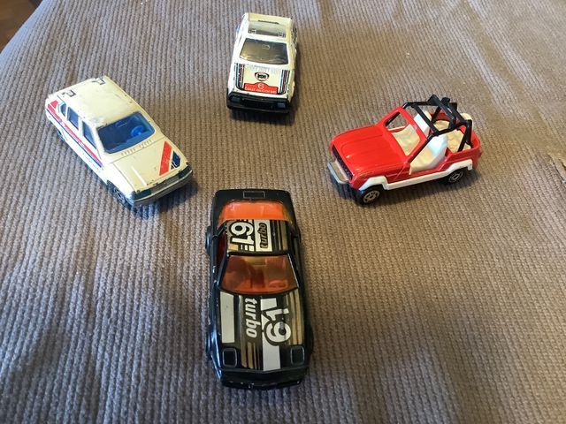 Dettagli del prodottoVengono vendute quattro macchinine Majorette. Sono una CHEVROLET CORVETTE, R JP4, LANCIA MONTECARLO E CITROEN VISA CHRONO. in scala 1/64. Sono in buone condizioni, sebbene mostrino normali segni di utilizzo.