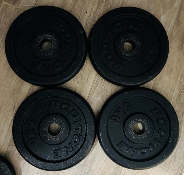 4 Dischi da 5 kg in ghisa per pesi.