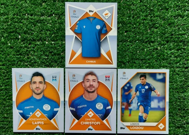 Dettagli del prodottoSet di 4 figurine Topps della Nations League di Cipro.