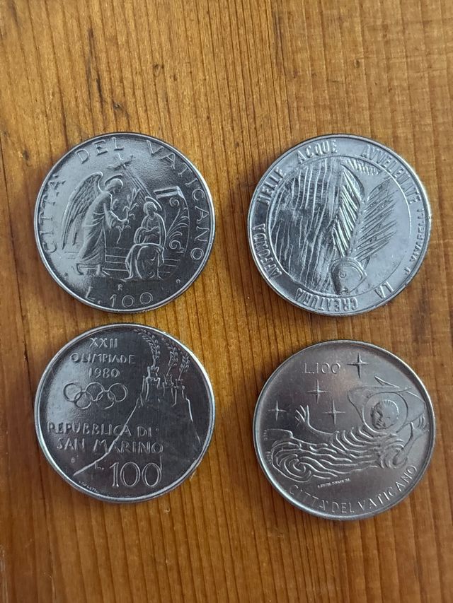 4 monete 100 lire Vaticane e San Marino