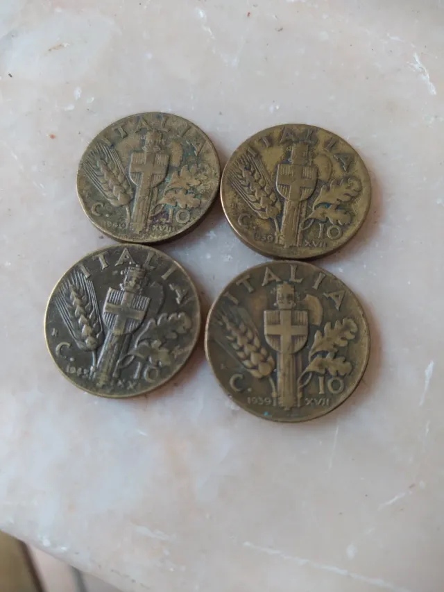 4 Monete Lire Italiane 10 Grana 1939 XVI
