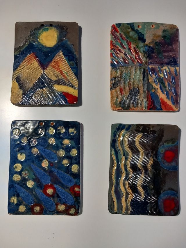 N. 4 piastre in ceramica refrattaria dipinte a mano da appendere