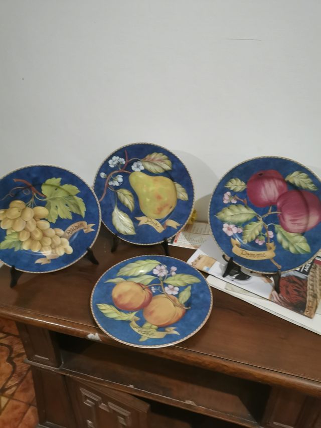 Piatti n. 4 rappresentanti frutta, reggipiatti n. 3.MARCHIO HENRIETTE