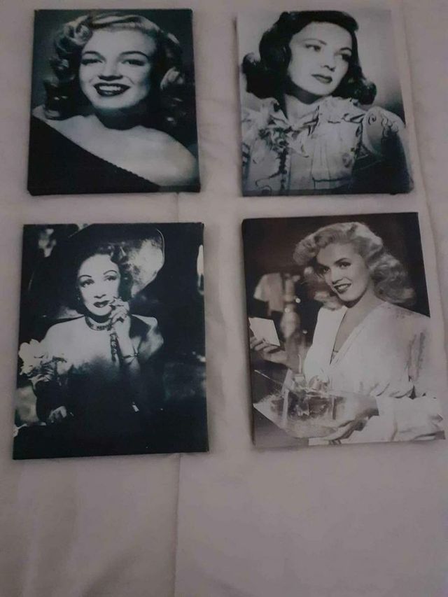 4 QUADRETTI MARILY MONROE SU TELA MISURE 25X20 IL PREZZO E' RIFERITO A TUTTI E QUATTRO QUADRETTI