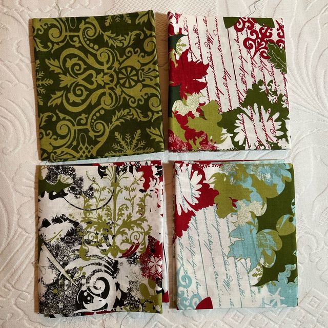 set di 4 scampoli di cotone americano con fantasie natalizie. cm 50 x 55 ciascuno