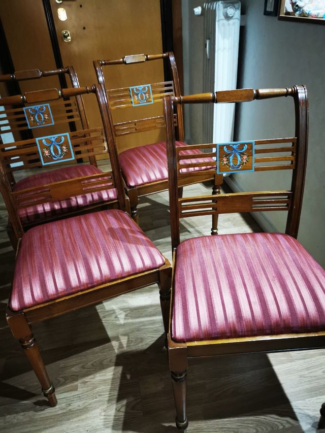 Dettagli del prodotto4 sedie in vero legno con inserti dipinti a mano
