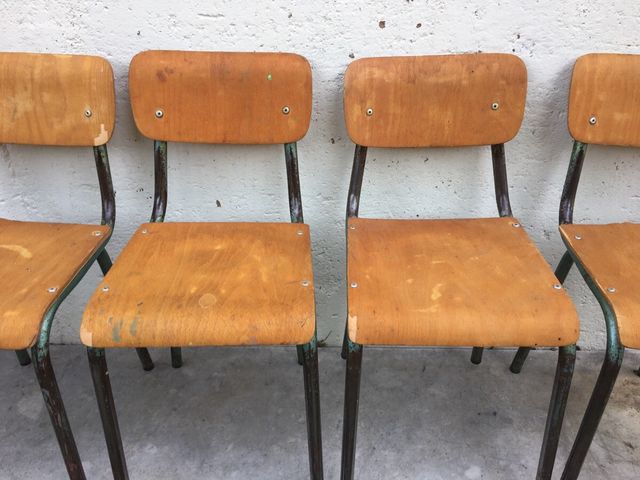 Dettagli del prodottocoppia di sedie eta’ prescolare antiquariato scolastico legno con struttura di metallo in origine verde acqua ma in molti punti e’ sviadito bellissime in una casa moderna o con un tavolino grezzo ! splendide per cetrine o arredamento camera bimbi