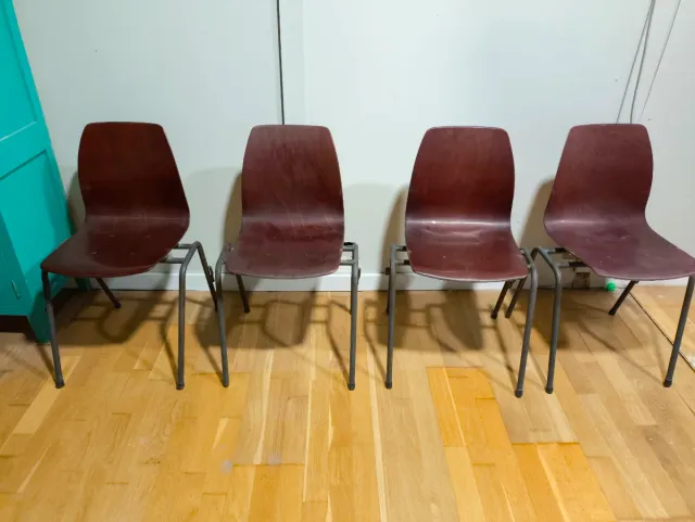 4 Sedie Vintage Flötotto in Legno e Metallo Originali