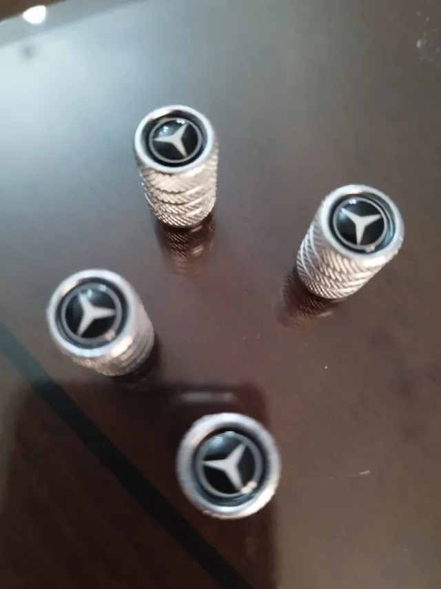 Set di 4 coprivalvole per pneumatici con logo Mercedes. - Colore: Argento - Materiale: Metallo - Design: Logo Mercedes a 3 punte