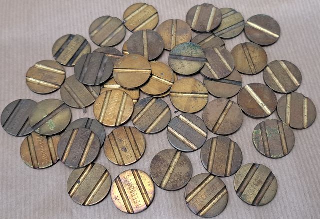 Dettagli del prodotto43 schede telefoniche spagnole, anni '60-'70. Schede in ottone, diametro 2 cm. Lo stato di conservazione è buono come visibile nelle foto, parte integrante della descrizione. La descrizione è stata tradotta automaticamente.