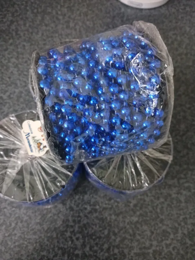 Dettagli del prodottoSet di 4 fili di perle per decorare l'albero di Natale o per creare composizioni festive. Ogni filo misura 10 metri.