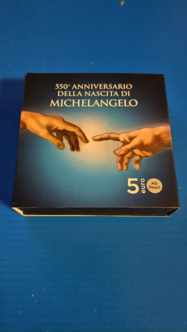Dettagli del prodottoMoneta commemorativa da 5 Euro per il 550° anniversario della nascita di Michelangelo.