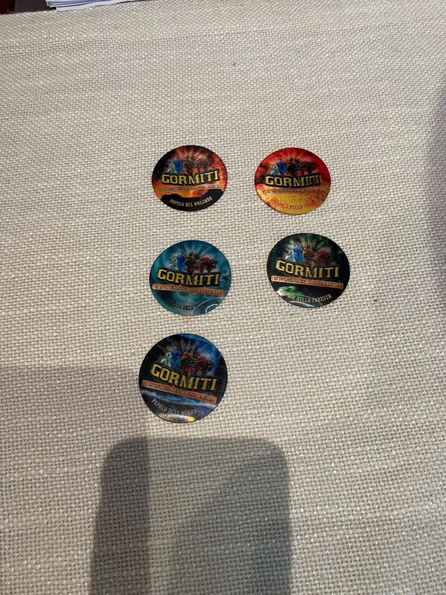 Dettagli del prodottoSet di 5 gettoni dei Gormiti, raffiguranti il Popolo del Vulcano.