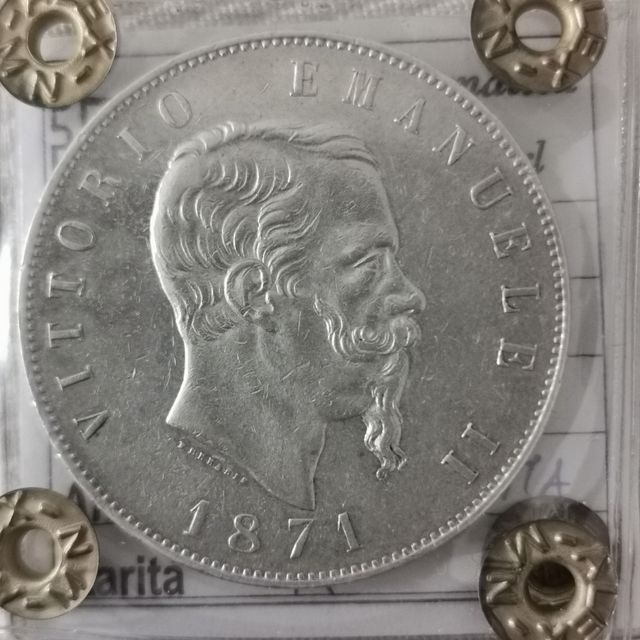 moneta in argento da 5 lire 1871 zecca di Roma Vittorio Emanuele II PERIZIATA spl+ rara REGNO D'ITALIA INVESTIMENTO COLLEZIONE