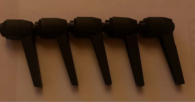 Dettagli del prodottoSet di cinque maniglie a scatto di colore nero.