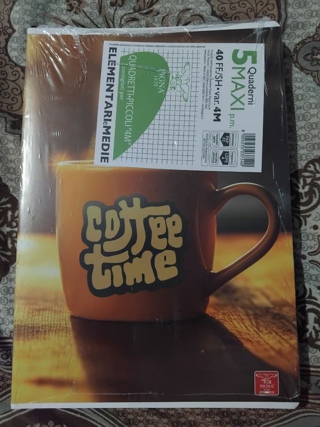 Dettagli del prodottoPacchetto di 5 quaderni Pigna Maxi, formato 40 fogli. I quaderni sono nuovi e ancora confezionati.
