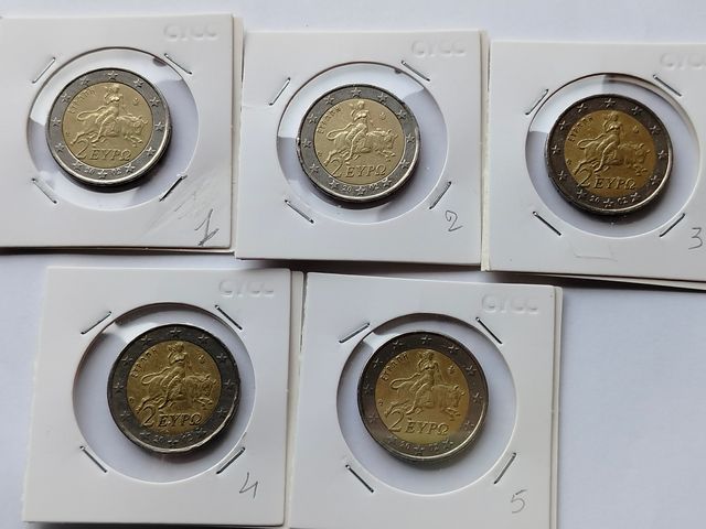 Dettagli del prodottoLotto di 5 monete da 2€ Grecia 2002