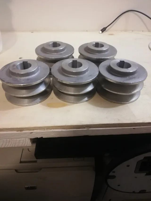 Dettagli del prodottoSet di 5 pulegge in alluminio per cinghie trapezoidali.