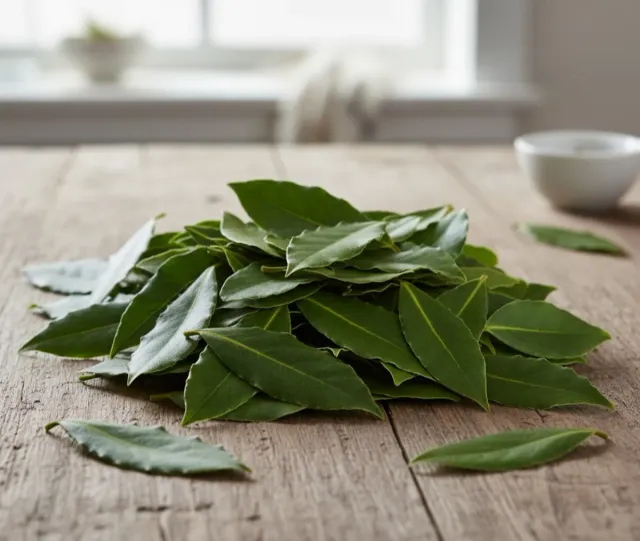 Foglie di alloro verdi, ideali per insaporire i tuoi piatti o per preparare tirane - Quantità: 50 foglie. - Colore: Verde brillante.