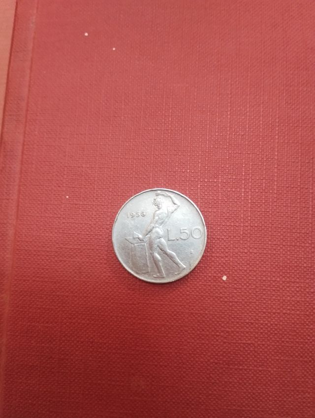 Moneta da 50 lire italiane coniata nel 1956. - In buone condizioni. - Mostra lievi segni del tempo.