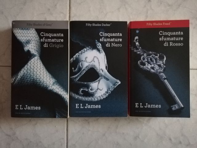 Trilogia 50 sfumature di grigio nero e rosso. Lingua italiana.