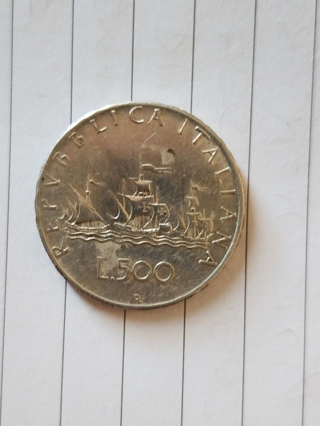Moneta da 500 Lire in argento del 1964. - Diritto: Ritratto della Repubblica Italiana. - Rovescio: Quattro caravelle. - Zecca: Roma (R).