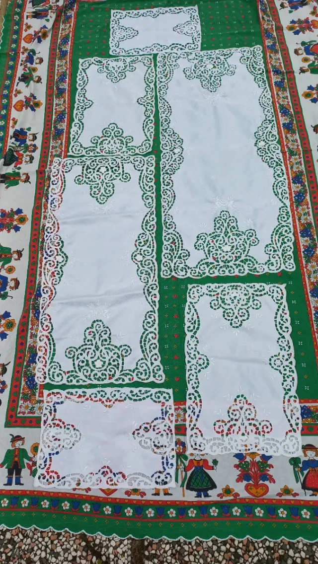 Dettagli del prodottoLotto di 6 centrini vintage coordinati, con ricami elaborati e bordi decorati. Perfetti per aggiungere un tocco di eleganza retrò alla tua casa.