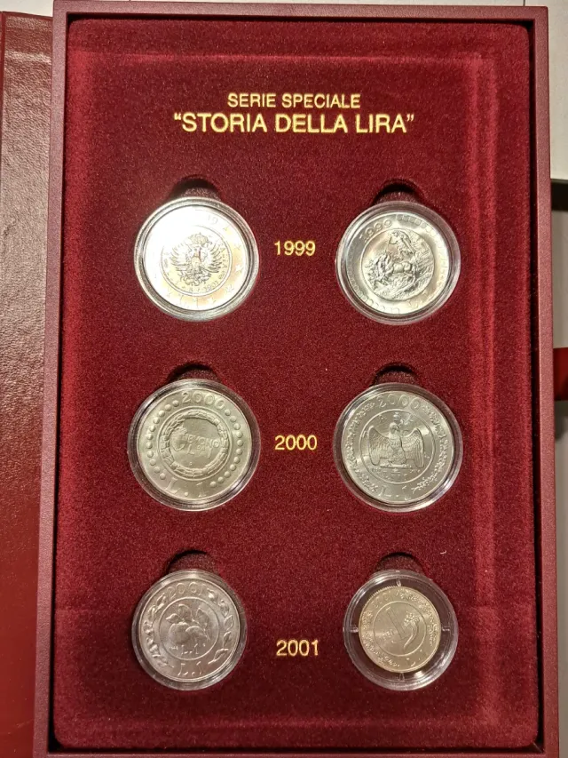 Set di 6 monete in argento Storia della Lira. - Anni: 1999, 2000, 2001. - Materiale: Argento.