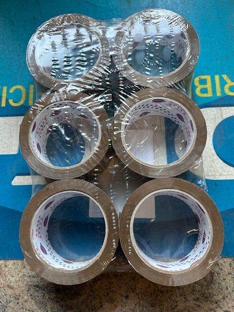 Dettagli del prodottoPacchetto di 6 rotoli di nastro adesivo marrone per imballaggio. Sono nuovi e sembrano in ottime condizioni. Ideali per spedizioni e imballaggi.