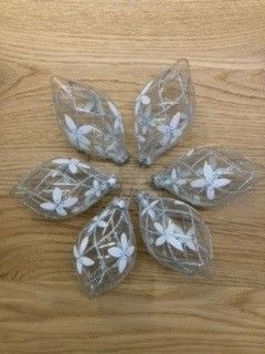 Dettagli del prodotto6 palline a goccia, in vetro per albero di Natale dipinte a mano con glitter. Dimensioni 7*7*13 cm di altezza.