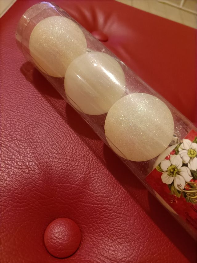 8 palline natalizie bianche e brillantinate