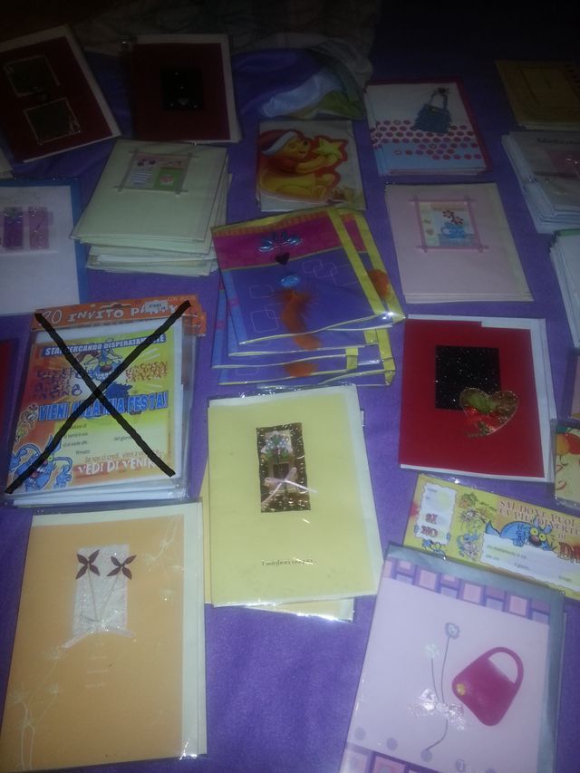 Dettagli del prodotto82 Biglietti Di AUGURI DA ADULTI E ALCUNI MA POCHISSIMI PER RAGAZZI/BAMBINI/E(erano 103 ma 21 biglietti li ho venduti)DI COMPLEANNO e AUGURI PER LE FESTA DELLA MAMMA e altri per L'ANNIVERSARIO DI MATRIMONIO e altri FELICITAZIONI PER LA NASCITA DI 1 FIGLIO/FIGLIA e altri di BUON NATALE e altri ONOMASTICO e altri CONGRATULAZIONI e altri SENZA SCRITTE COSì CHE SI PUò SCRIVERE CIò CHE SI PREFERISCE E PERSONALIZZARE GLI AUGURI E PER OGNI TIPO DI AVVENIMENTO/FESTA,IN VARI MODELLI E COLORI E DISEGNI E E APPLICAZIONI(vedi le APPLICAZIONI in foto)Tutti NUOVI,SIGILLATI,Apribili In2,CON 1Busta L'Uno,€80 PER TUTTI 82,o vendo singolarmente minimo 20