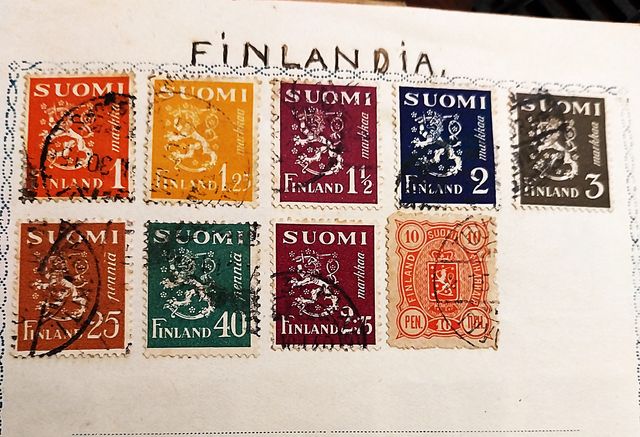 - Francobolli con raffigurazioni del leone araldico finlandese.