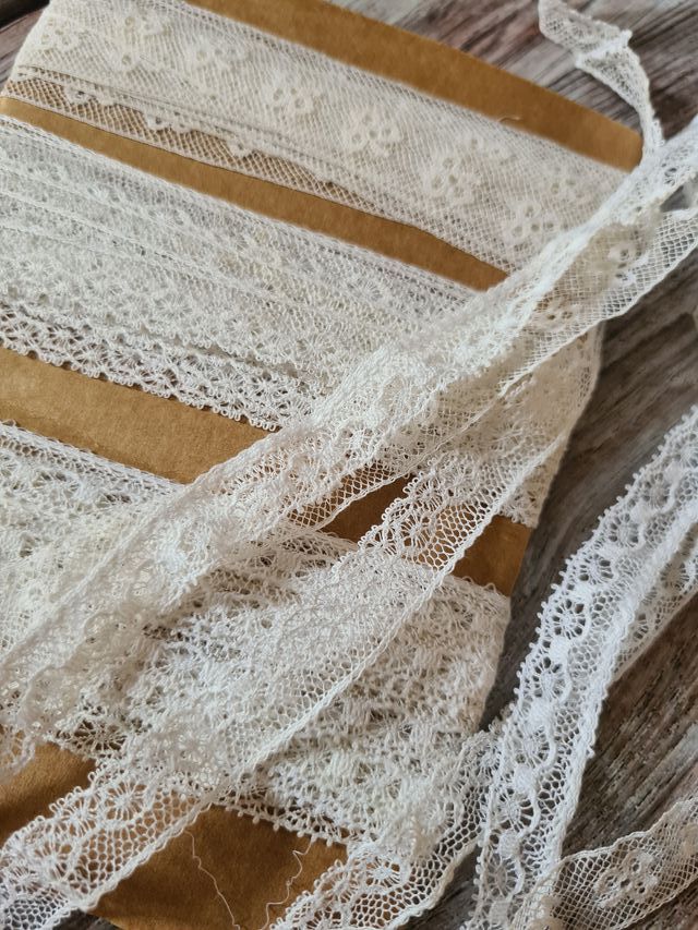 Set 3 diversi pizzi vintage francesi, 3 metri ciascuno