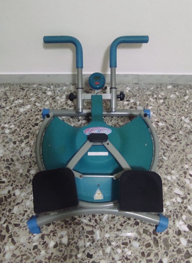 In perfette condizioni. Attrezzo costituito da un telaio circolare con poggia ginocchio mobili, che assecondando il movimento, e di impugnature antiscivolo per accompagnare il movimento del corpo.