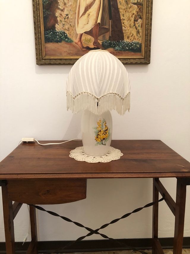 Abat jour elegante con telaio di stoffa con frange. Altezza 41 cm