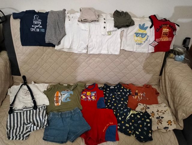Dettagli del prodottoPacchetto di vestiti per bimbo di 3-6 mesi, perfetti per la primavera-estate. Sono in ottime condizioni e pronti per essere indossati.