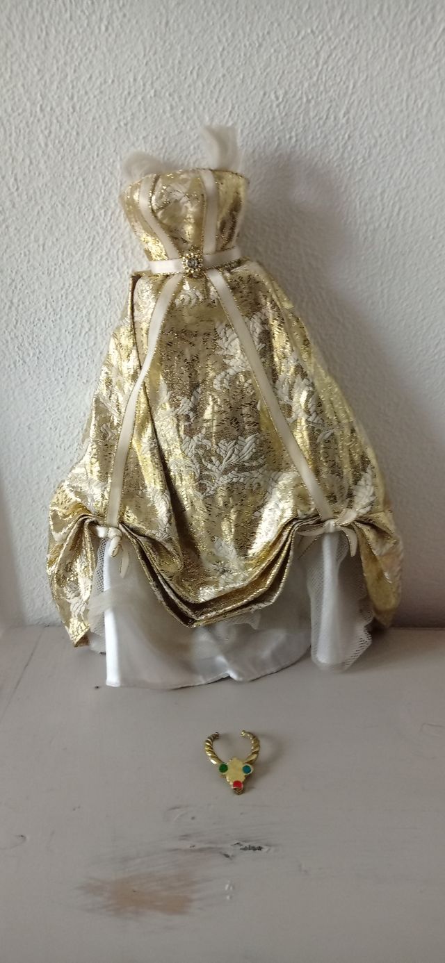 Dettagli del prodottoBellissimo abito per Barbie della Principessa Sissi. Realizzato in tessuto dorato con motivi floreali.