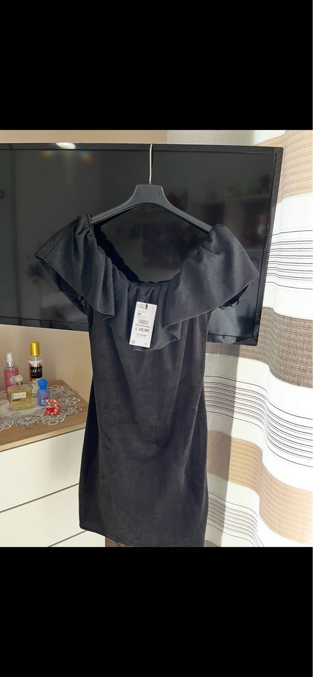 Abito corto nero con volant