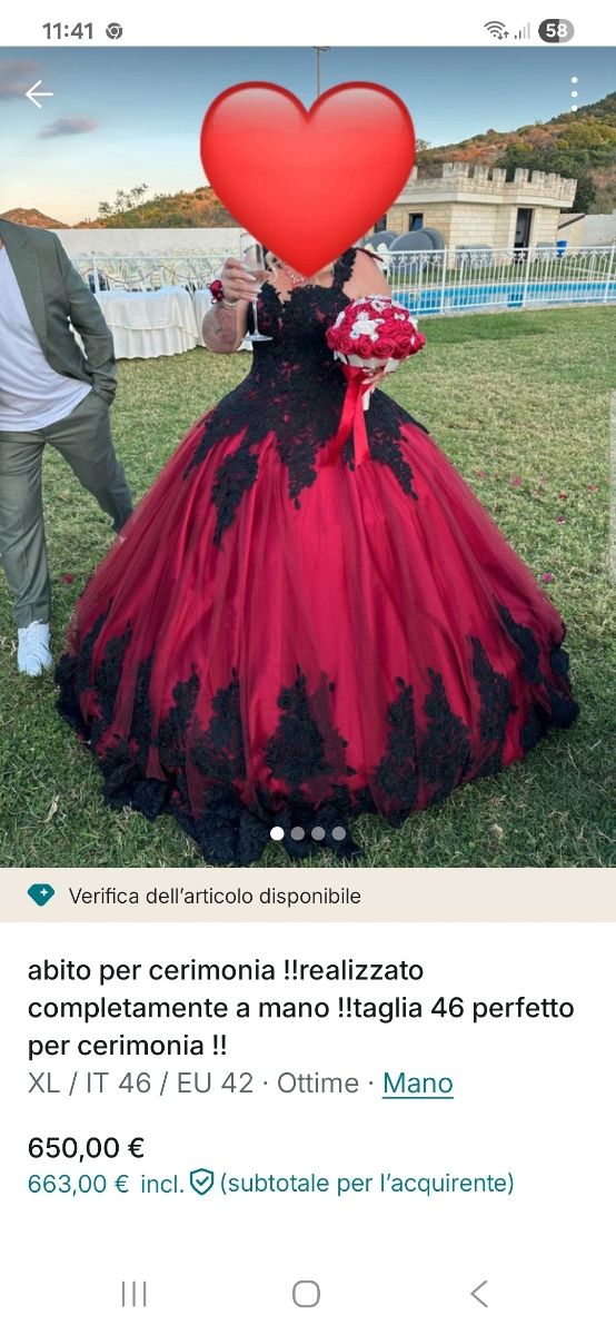 Abito da cerimonia rosso e nero fatto a mano