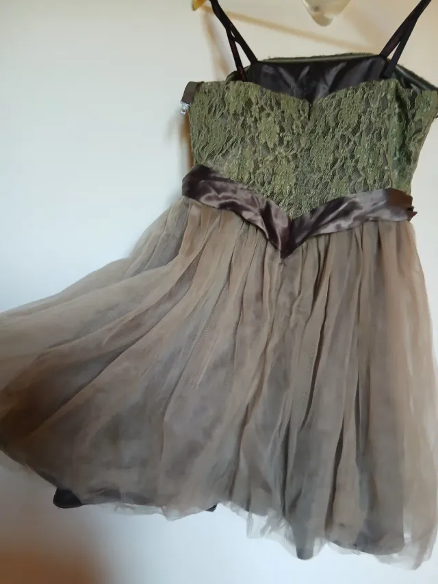Abito da cerimonia verde e marrone