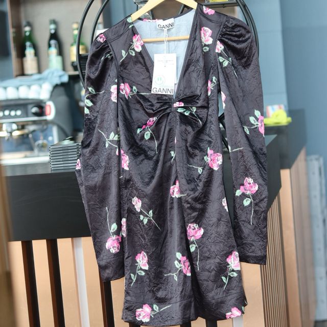 Abito Ganni Rose Nero Nuovo con Etichetta
