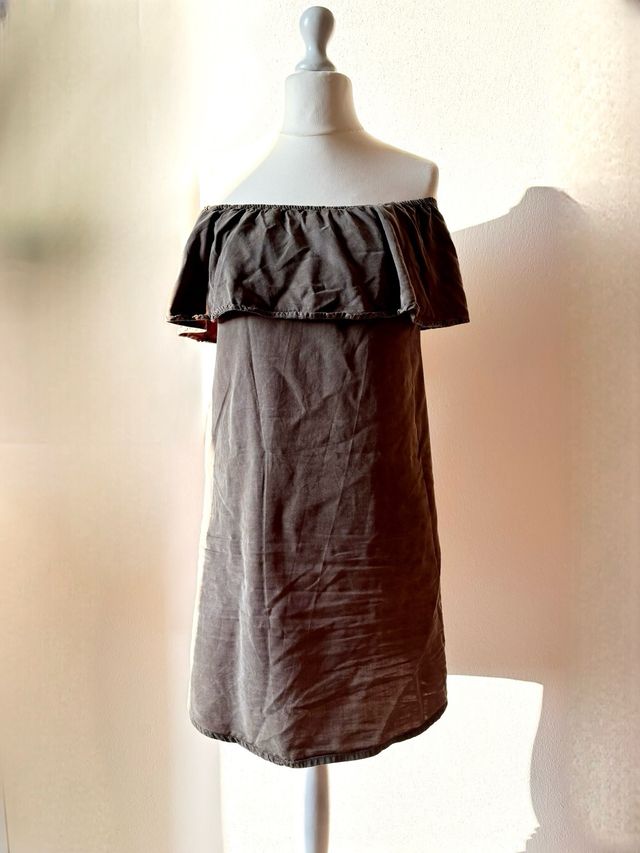 Abito Pimkie scollo a Bardot verde oliva tg M