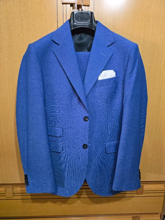 Utilizzato solo una volta, in quanto ho fatto da testimone, vendo abito completo (giacca e pantalone), in cotone Vincent Trade, color blue, taglia 46 slim. L'abito è in condizioni perfette e nuovissimo e veste perfettamente.