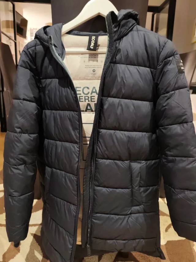 Cappotto imbottito della marca Ecoalf per bambina. Colore blu navy. Con cappuccio. Chiusura con cerniera.