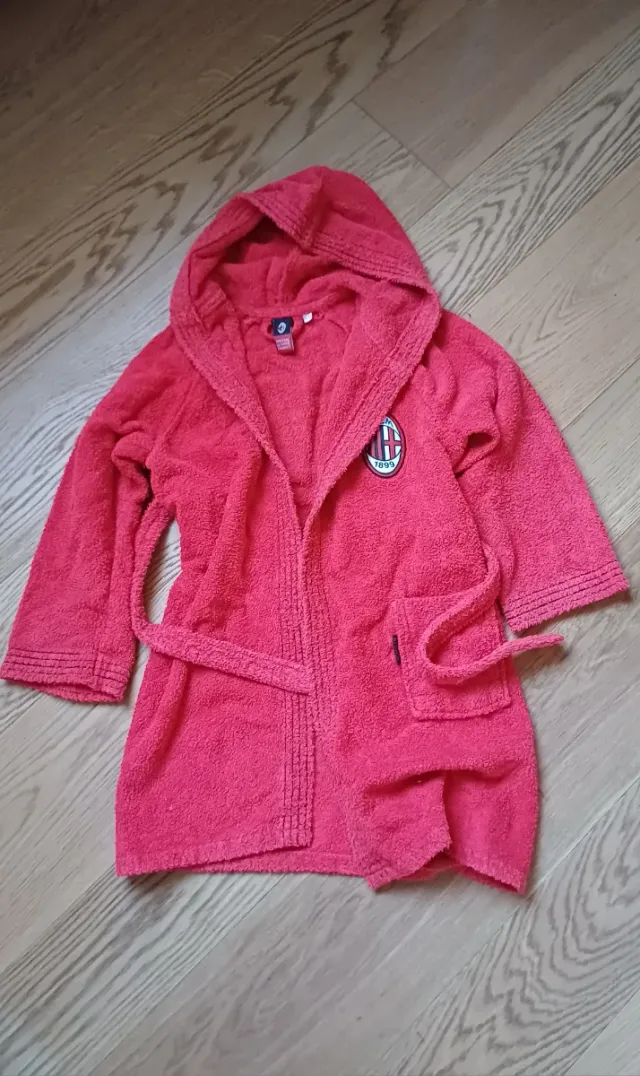 Dettagli del prodottoVendo un accappatoio ufficiale AC Milan per bambino/a, perfetto per i giovani tifosi rossoneri!