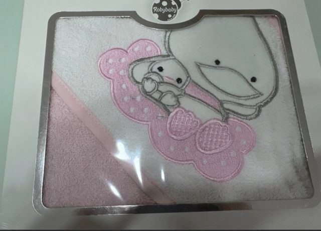 Dettagli del prodottoMorbido accappatoio a triangolo per neonati, ideale per avvolgere il tuo piccolo dopo il bagnetto. Presenta un simpatico ricamo di un coniglietto su uno sfondo rosa.