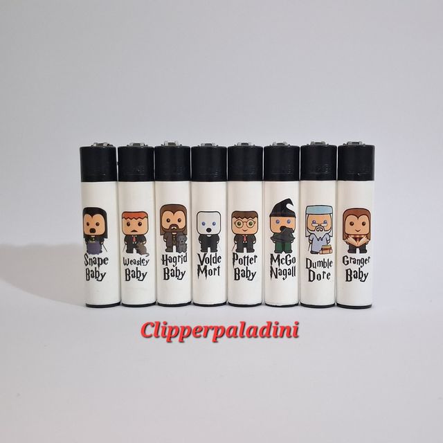 Dettagli del prodottoSet di accendini Clipper con personaggi di Harry Potter.
